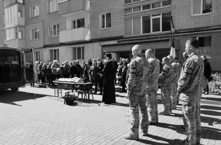 Віддати останню шану військовослужбовцю до будинку, де проживав воїн, прийшли заступник Луцького міського голови Ірина Чебелюк, родина, сусіди та побратими.