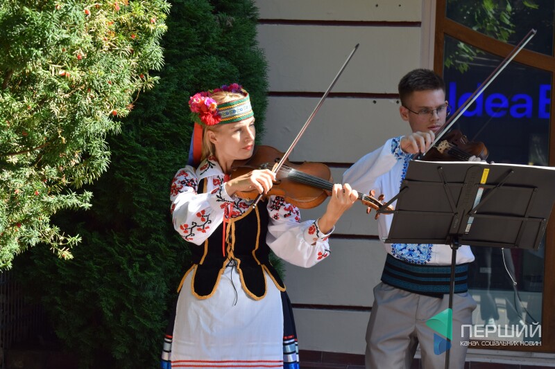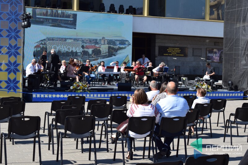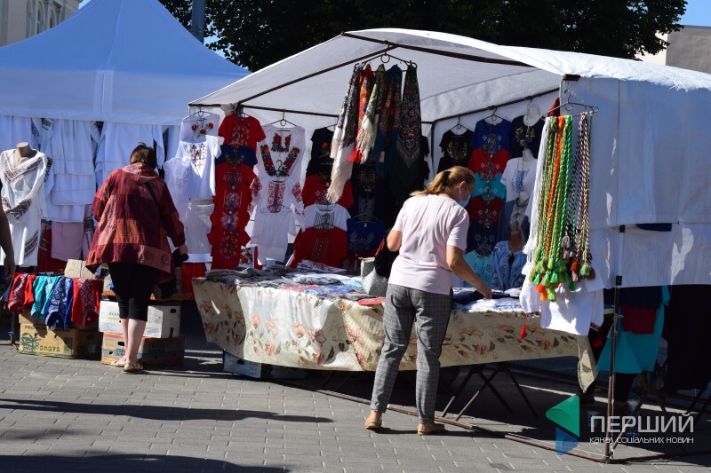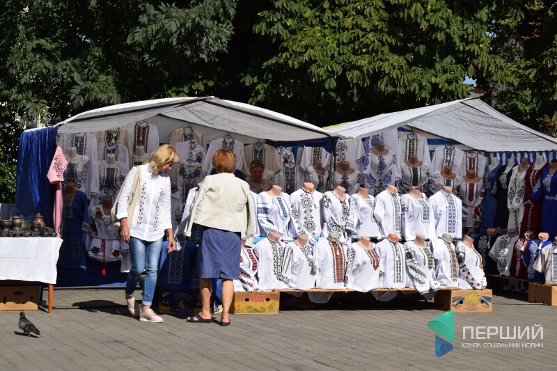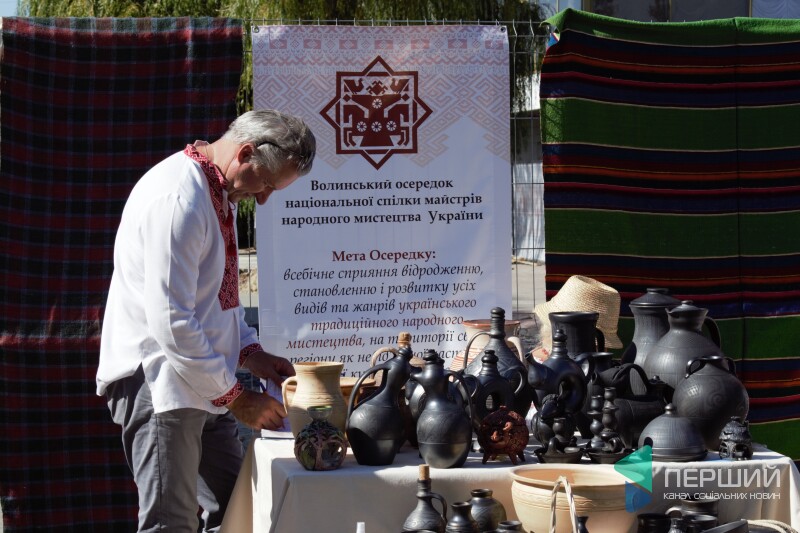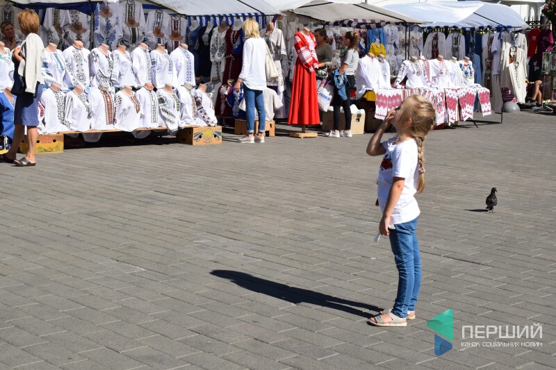 На Театральному майдані поставили сцену, де спершу відбулись офіційні урочистості, а потому виступив артист Василь Зінкевич та Волинський народний хор. Там же працює ярмарок народних ремесл. Продають традиційно вишиванки, мед, гончарні вироби, прикраси.
