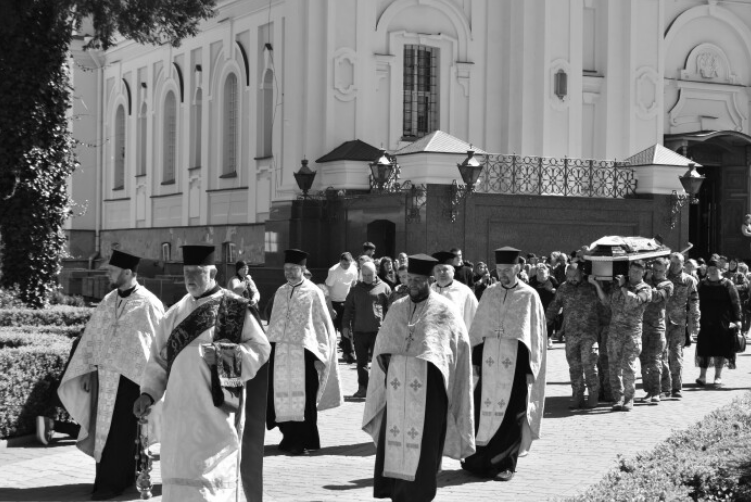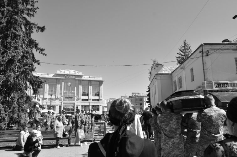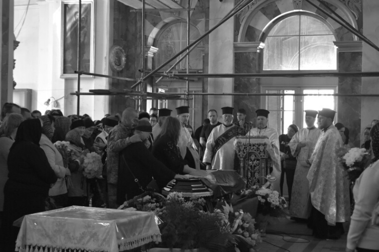 Після завершення заупокійного богослужіння труну з тілом захисника пронесли Театральним майданом.