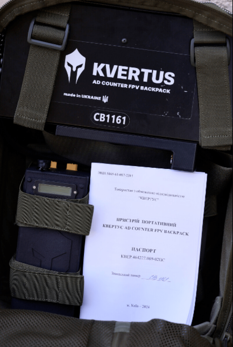 Військовій частині А4025 було передано портативний РЕБ КВЕРТУС AD COUNTER FPV BackPack.