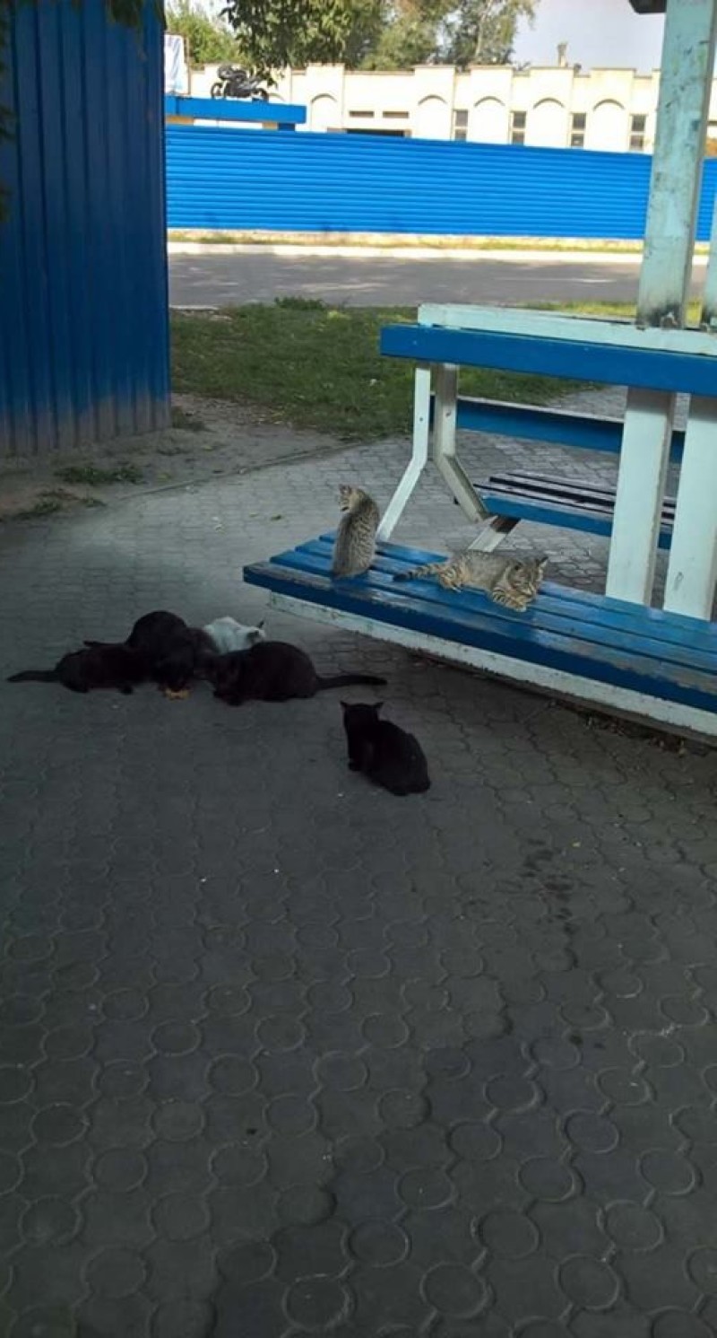 У Луцьку на зупинці біля автонстанції №1 оселяються безпритульні коти. Люди постійно їх підгодовують.