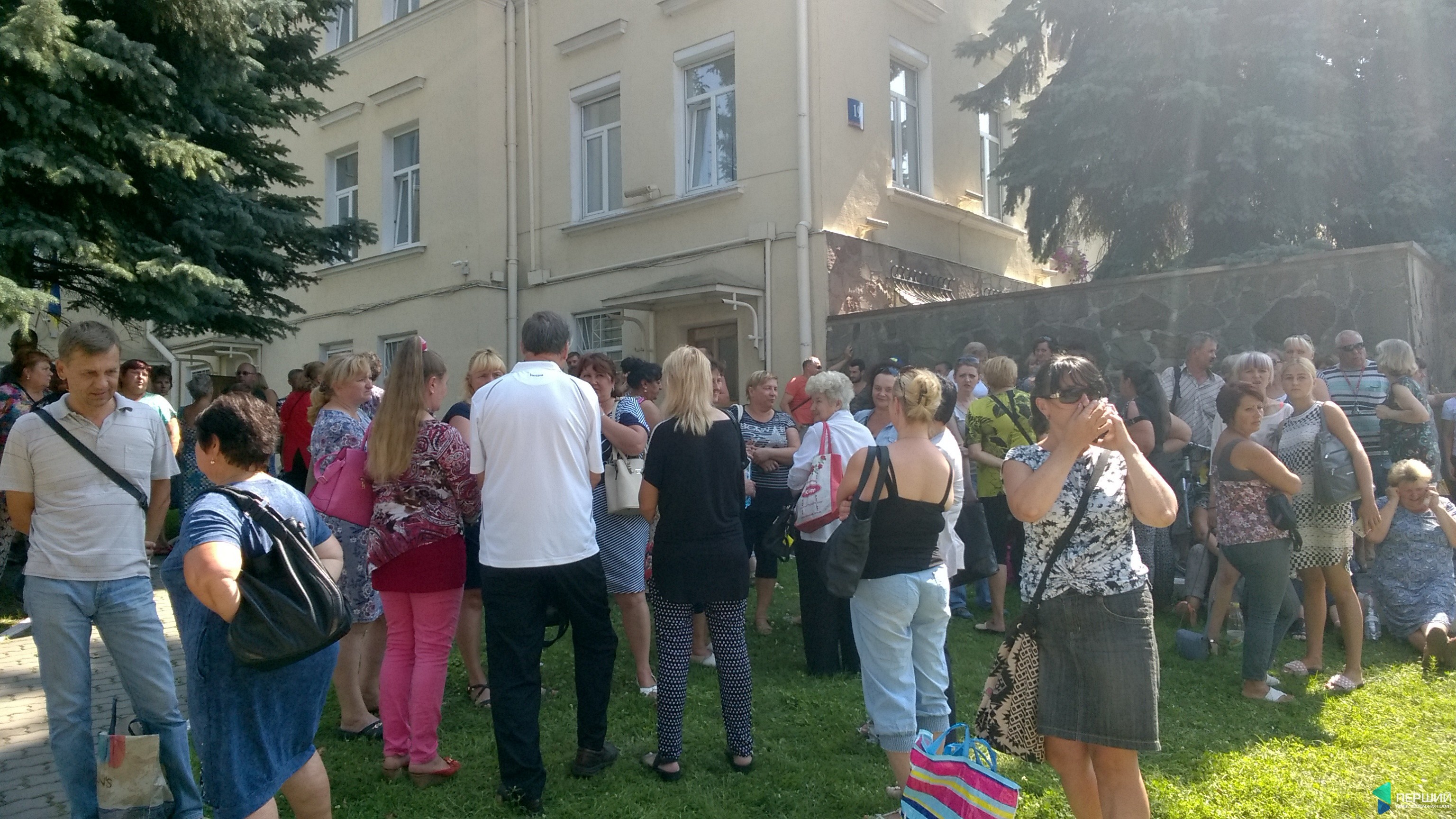 Під стінами Луцької міської ради гамірно та людно – підприємці Старого ринку зібралися на мирний протест і чекають «вироку» «земельної» комісії, засідання якої досі триває.
