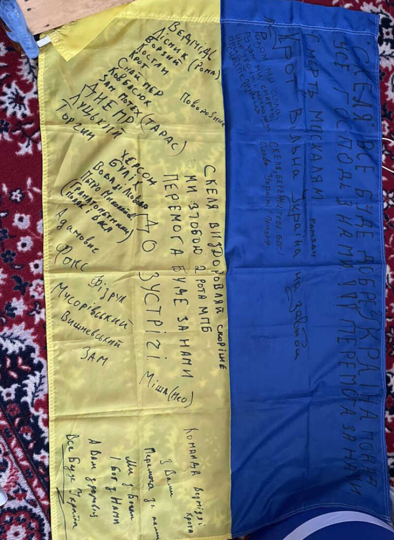 «Тоді ще раз переконався у божому провидінні. Дійсно, хто знає, чи вдалося б зберегти руку, якби тоді був інший лікар. Після Харкова перевели до лікарні у Суми, де продовжив лікування. Тоді до мене приїхала дружина, котра була зі мною усі місяці, допоки не виписали. Увесь цей час телефонували та підтримували мої хлопці, а деякі навіть приїздили, і привезли із собою прапор зі своїми підписами. Їхній візит став для мене приємною несподіванкою, а прапор бережу як найдорожчу реліквію».