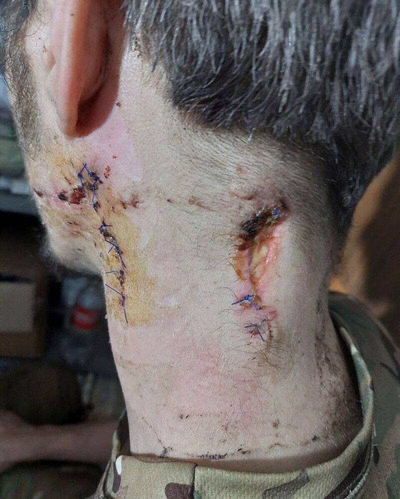 Снайпер поранив одного з побратимів в живіт, і його евакуювали в безпечне місце. Дехто отримав поранення від мавіків. На позиції ми залишились вдвох, і під час чергового пересування ворожий снайпер влучив в мене. Куля влучила в голову та шию.