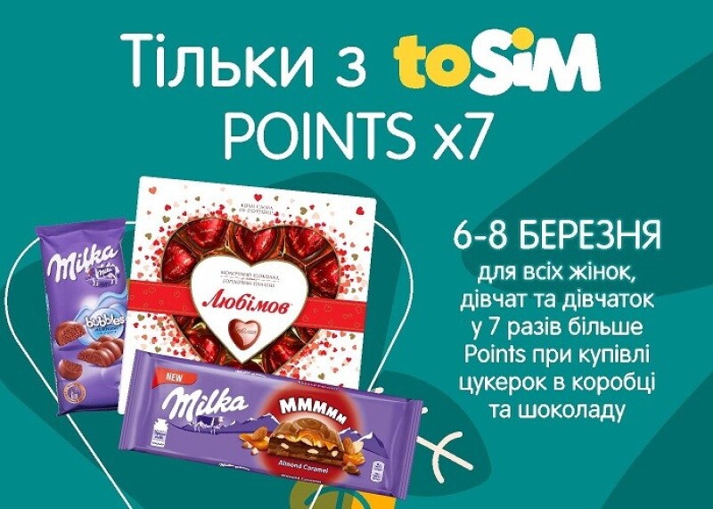 Сім23 уже не вперше проводить акції для користувачів додатку ToSim. До свята весни на гостей чекають дві акції: можна отримати у 7 разів більше points при купівлі шоколаду та цукерок в коробці, а також купити чотири донати за ціною трьох.