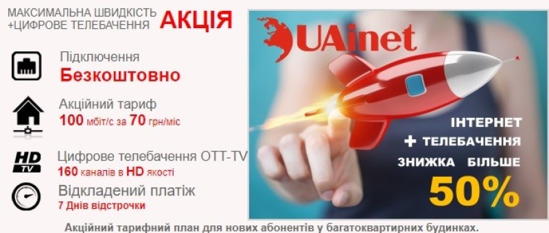 Вартість послуг залежить від швидкості і кількості телевізійних каналів. Адже UAinet, окрім інтернету також підключає цифрове телебачення. Зокрема, підприємство надає кілька видів пакетів для підключення: окремо інтернет, або інтернет+TV. Таким чином, клієнти отримують нову оптоволоконну мережу з підключенням до швидкісного інтернету та цифрове телебачення OTT-TV через кабель без додаткових пристроїв. У TV пакеті – близько 160 каналів в HD якості.