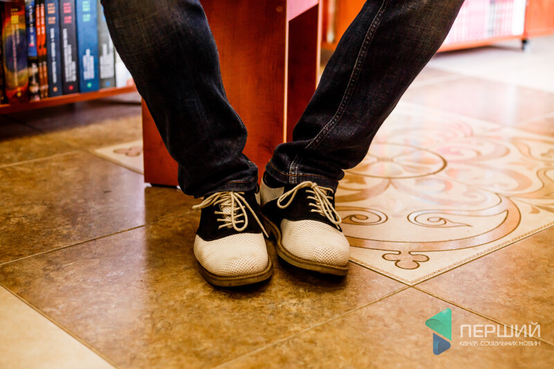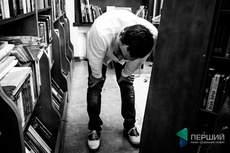 Наостанок ми просимо Віктора вділити ще кілька хвилин для фото. То один із тих героїв, якого не сковує поважна атмосфера книгарні.