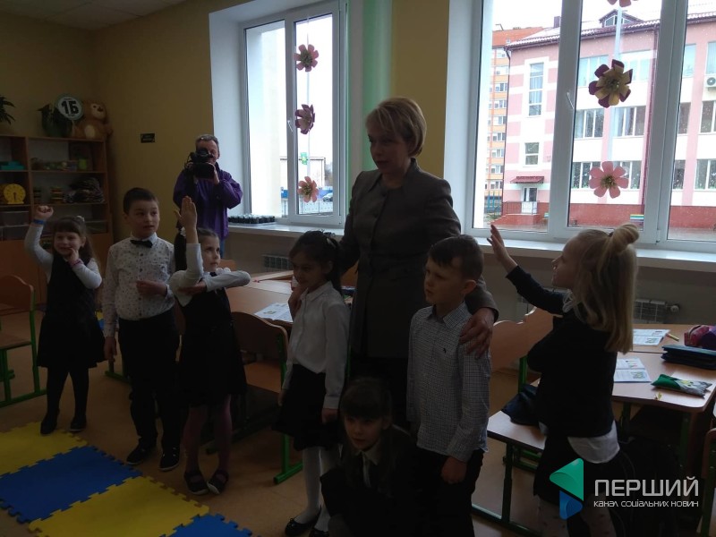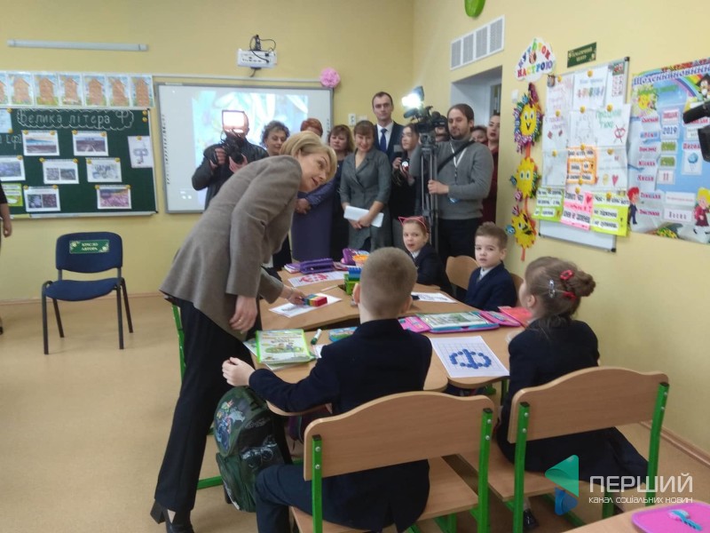 У понеділок, 11 березня, вона побувала у луцькій школі-ліцей №27. Поспілувалася з учнями, в яких запитувала, чи їм подобається навчання.