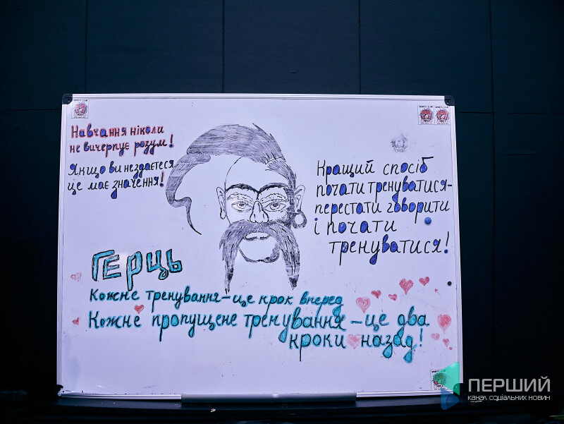 «Богові – слава, учителю – честь, ворогам – герць! Слава Україні! Героям слава!» – це фундаментальні гасла, якими закінчуються тренування і показові виступи.
