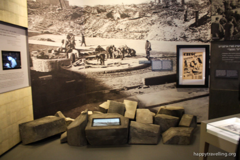 Саме тут переходячи з однієї частини галереї в іншу, гості музею ніби йдуть по варшавських вулицях до площі Умшлагплац, яка разом із сусідніми будинками у 1942–1943 роках використовувалася як місце концентрації євреїв з Варшавського гетто перед їх вивезенням до табору смерті в Треблінці або до таборів у Дистрикті Люблін. Творці експозиції хотіли передати почуття клаустрофобії, що охоплювало тисячі зігнаних на цю площу євреїв, яких звідси вивозили до концтаборів…