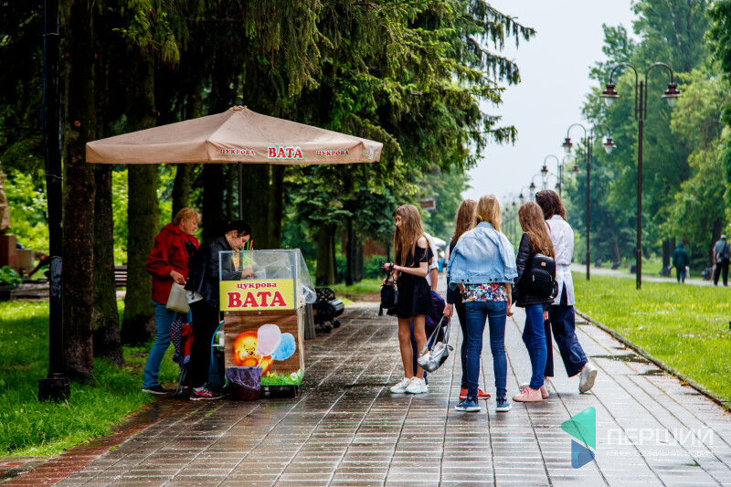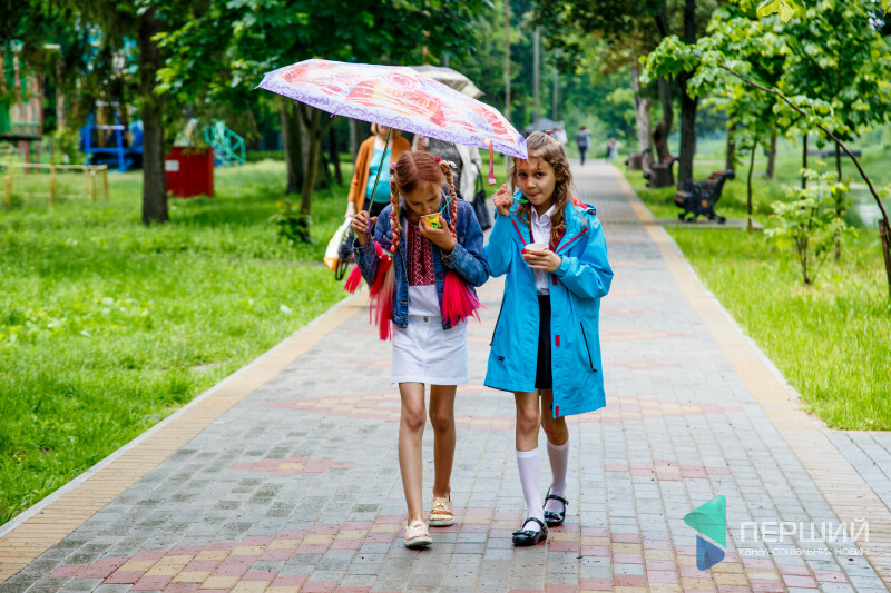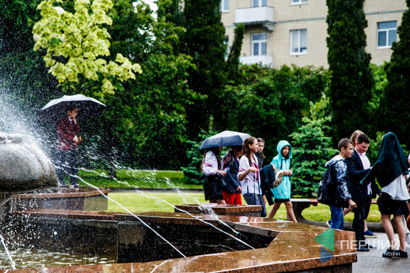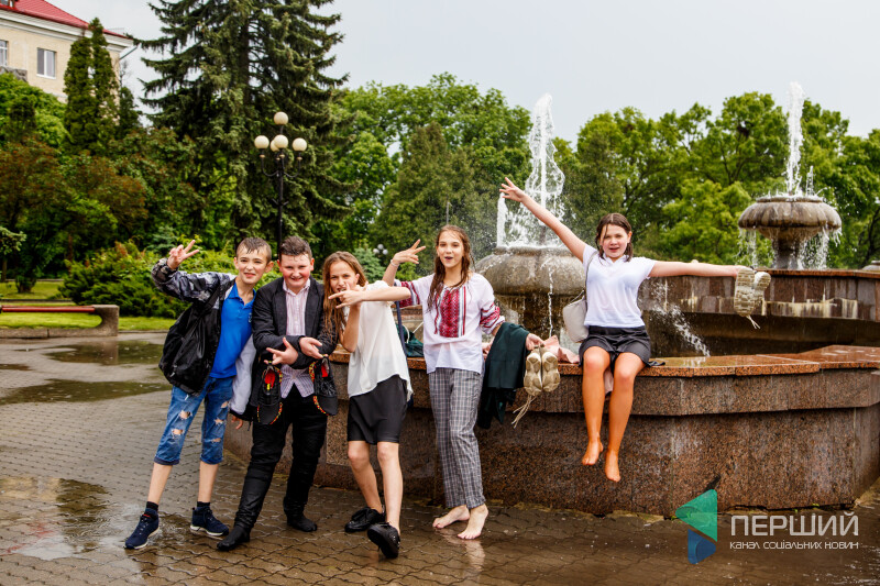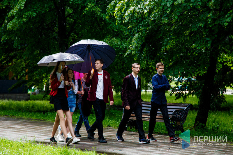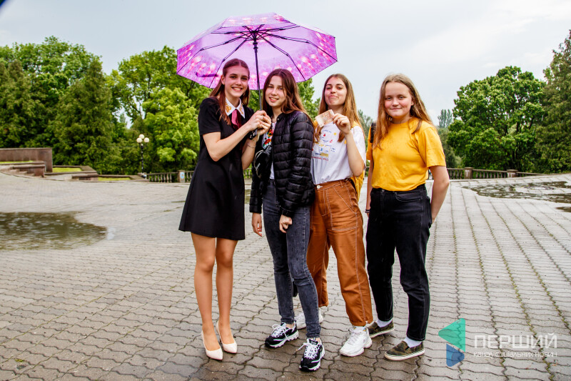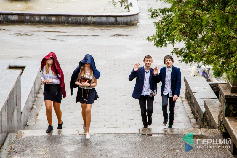 І якщо урочисту «лінійку» вранці вдалось пережити без опадів, то відгуляти свято школярам і випускникам довелось під рясним дощем. Хтось таки взяв з собою парасолю і що там той дощ! Але найщасливішими виглядали ті, хто змок вщент. Траплялись навіть відчайдухи, які купались у фонтанах...))