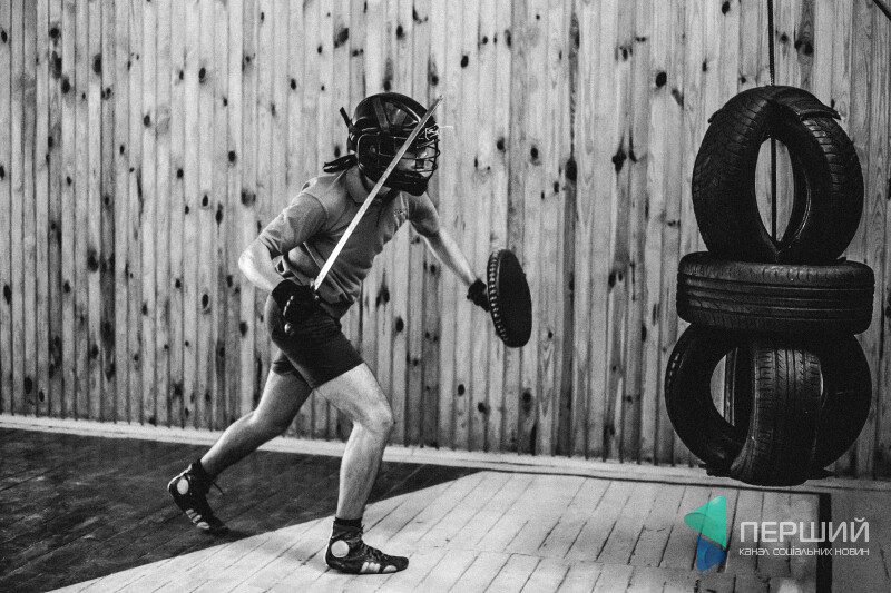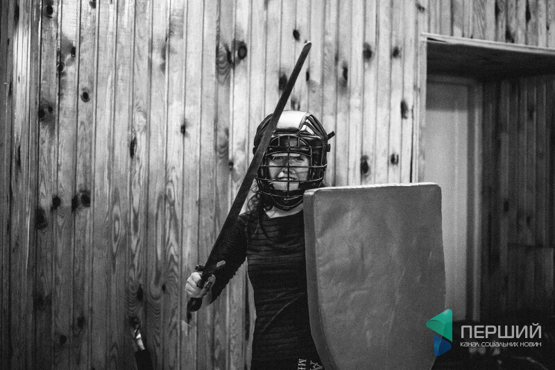 – Ти навіть не подряпала б обладунки. Не бійся, не затримуй удар перед «Стьопою» і бий корпусом, а не лише рукою, - дає настанови тренер.