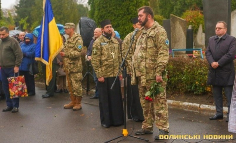 Голова ГС «Спілка воїнів АТО Волині» Олександр Серватович назвав усіх присутніх своєю родиною, адже бійці називають один одного побратимами, адже вони побраталися під час цих жахливих подій ближче, ніж родичі по крові. Він подякував членам родин загиблих за тих найкращих побратимів, які полягли і дивляться на нас тепер з неба. Це небесне воїнство допоможе на землі завершити справу справедливого суду і досягнення кінцевої мети – миру. Він побажав, щоб завдяки їм ми прийшли до миру. Загиблих побратимів він закликав вшанувати хвилиною мовчання.