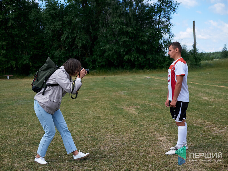 Знайти духченських футболістів у селі і посеред будня-полудня виявилося не так і просто. Андрія Олінчука відпрошуємо удома на кілька хвилин, відриваємо від роботи в полі. Він біжить перевдягатися у футбольну форму, сідлає мотоцикл і їде показувати нам стадіон.