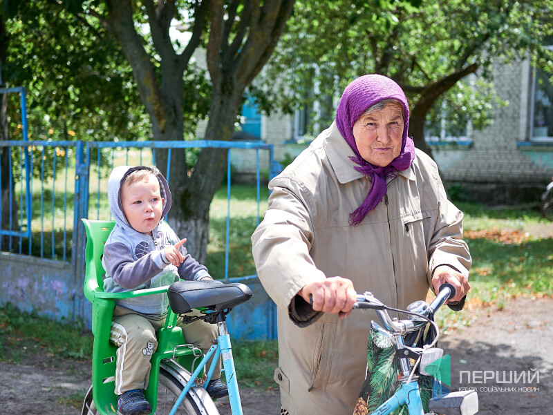 Софія Мороз, вона ж - баба Соня, паркує ровера під парканом. І каже, що читає «з отакеї», «з висьми років».