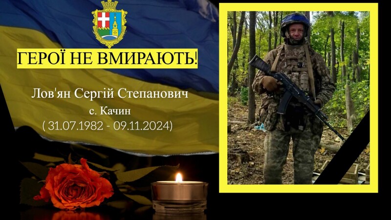 На полі бою, захищаючи Україну від ворога, загинув житель села Качин, воїн Збройних Сил України – Лов’ян Сергій Степанович, 1982 року народження.