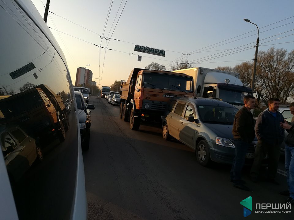 На фото видно, що через аварію на мосту утворився затор.