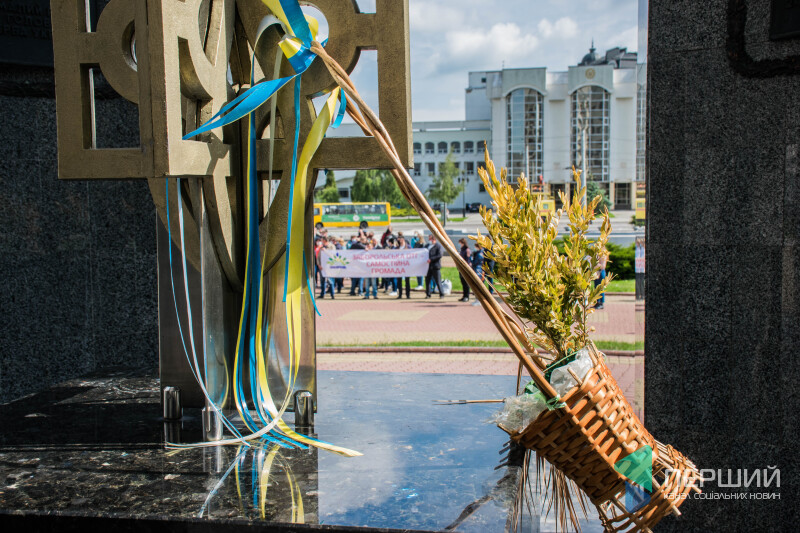 Люди тим часом постійно підходять. Дехто з прапорами. Дехто у вишиванці. Дружньою колоною з плакатами та стягом громади йдуть на свій малий майдан княгининівці.
