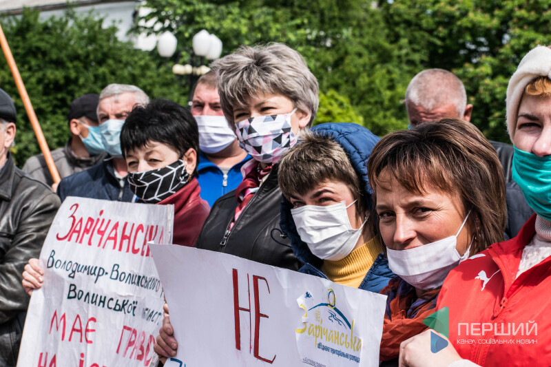 У натовпі під стінами Волинської ОДА на мітингу громад вперто доводять, що перспективний план формування територій області затвердили, їх не почувши і їм на шкоду. Все різкішими стають голоси. Тут Гуто-Боровенська, Заборольська, Княгининівська, Зарічанська ОТГ.