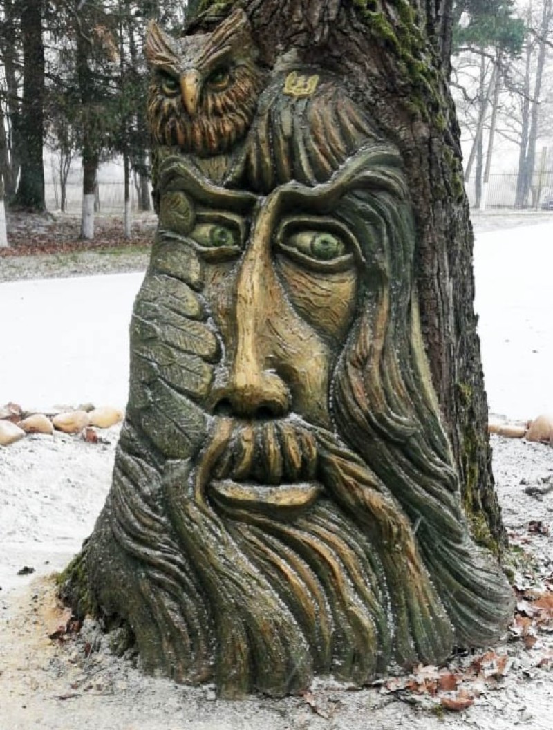 Після цього з допомогою скульптора його оригінально прикрасили. Тепер на стовбурі дерева, де було досить об’ємне пошкодження (через поважний вік та хвороби), з’явилося людське обличчя.