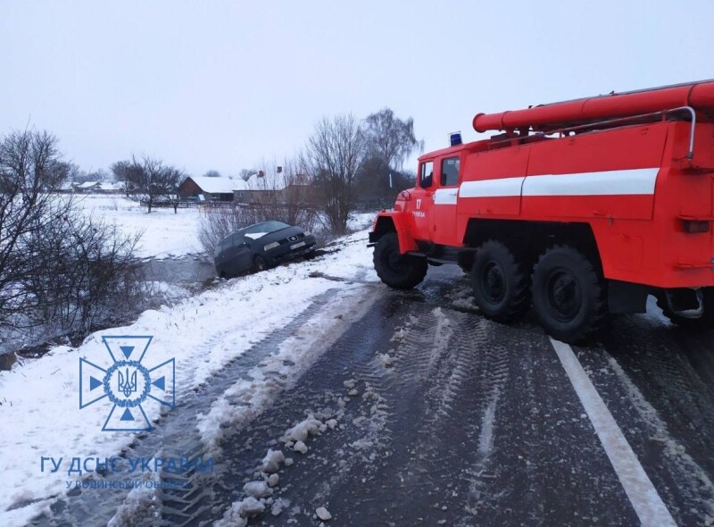 На місці події працювали рятувальники 17 ДПРЧ смт Турійськ. За допомогою троса вони відбуксирували автомобіль з кювету на стійке дорожнє покриття.