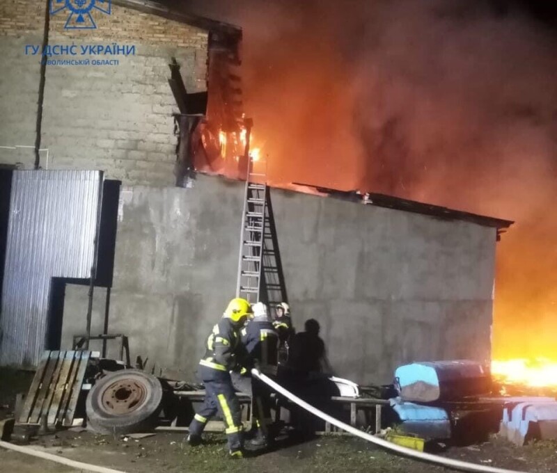 Вогнем знищено покрівлю та пошкоджено обладнання, імовірна причина - коротке замикання електромережі.