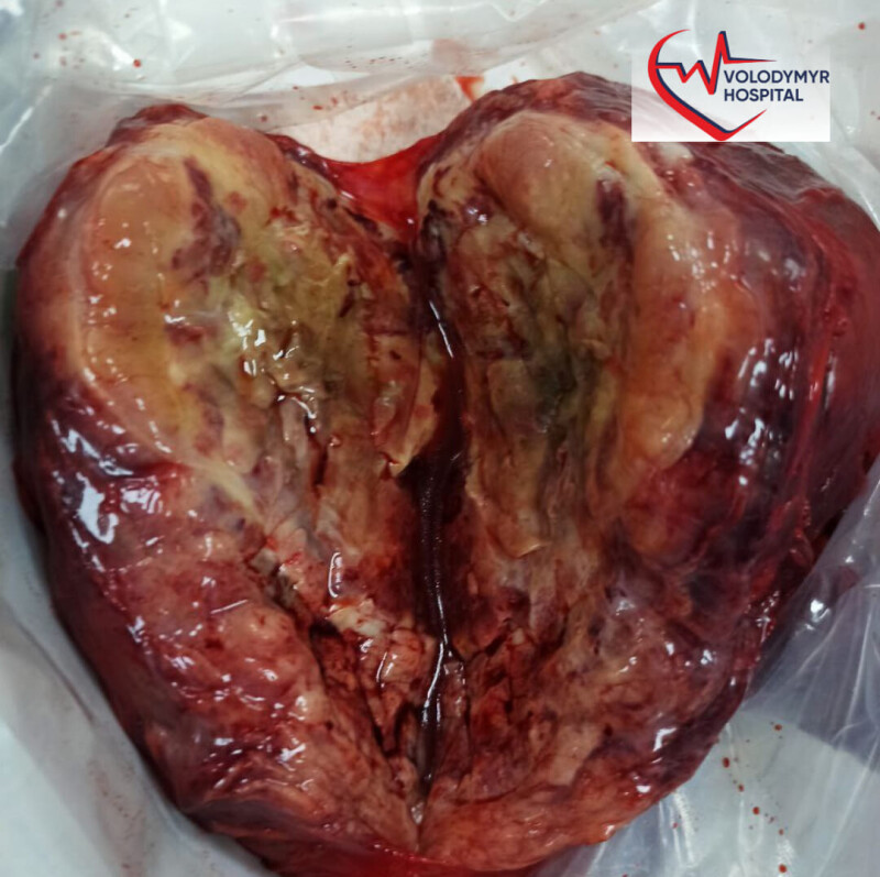 За даними обстеження КТ був діагностований новоутвір заочеревинного простору з наявністю чіткої капсули, що був розміщений поряд з ниркою. Було виконане оперативне видалення пухлини під загальним знечуленням.