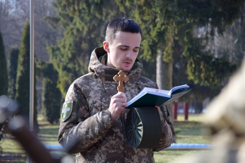 Після цього капелан помолився за новобранців, благословив їх та окропив освяченою водою. Він закликав кожного воїна не лише до мужності, а й до віри у перемогу, адже духовна міць – це ще одна зброя, яка допомагає долати труднощі війни.