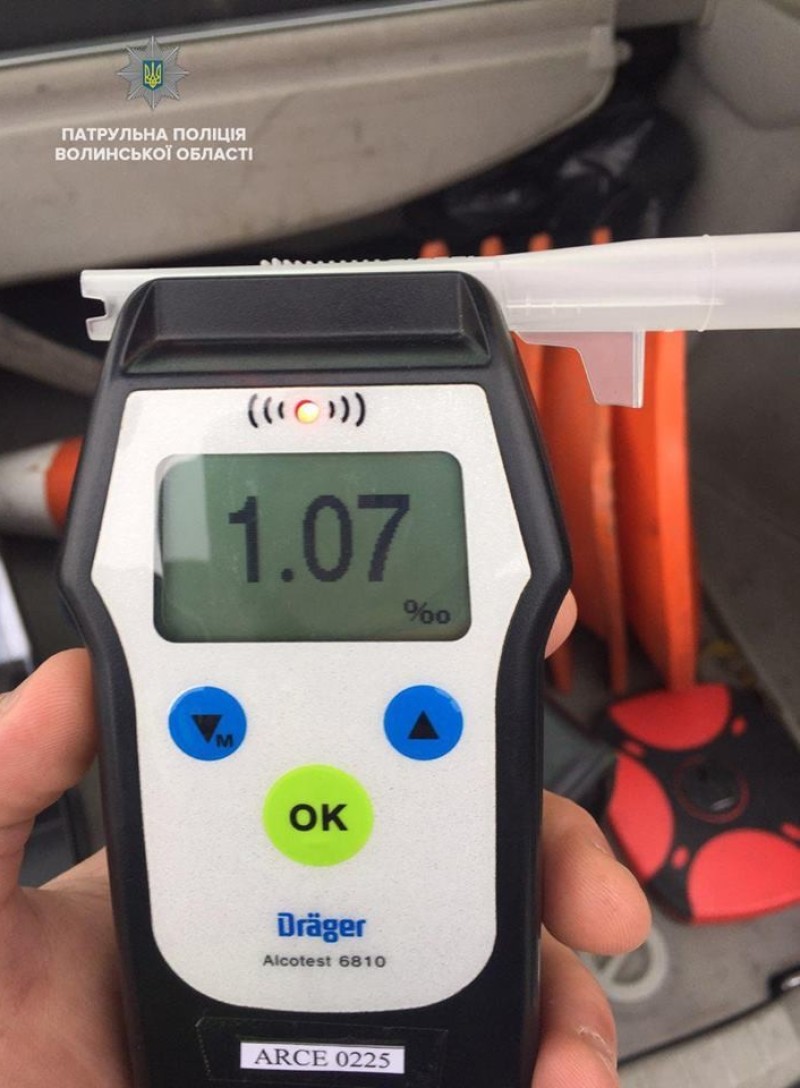 Першого водія помітили в Луцьку на вулиці Клима Савури вранці 15 грудня. Він припаркував свій мікроавтобус з порушенням правил дорожнього руху. У чоловіка одразу помітили ознаки сп’яніння, що й підтвердила перевірка – 1, 07 проміле. На порушника оформили протокол за ст. 130 КУпАП.