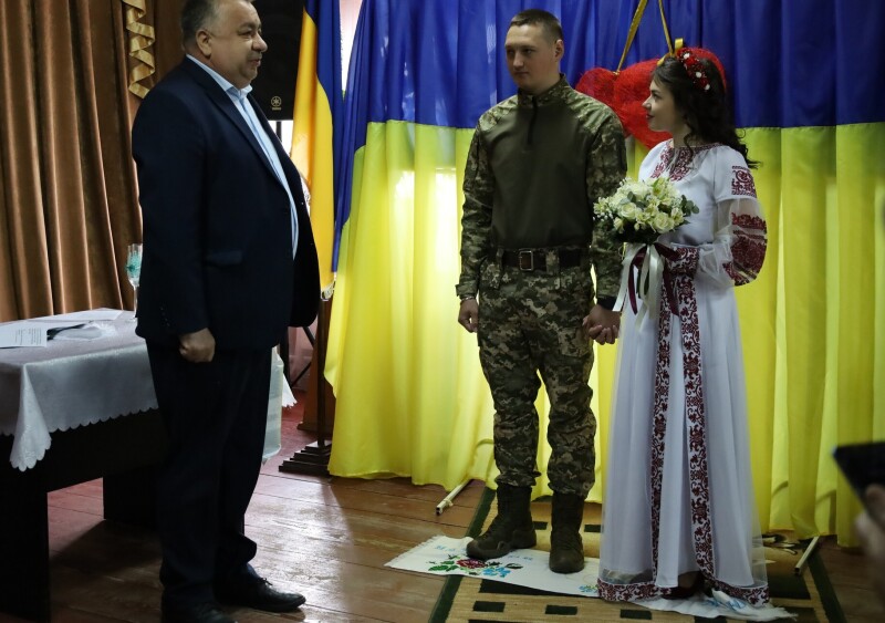 «Захоплюємося таким відважними та патріотичними людьми. Закохані у скорочені терміни поспішили зареєструвати шлюб, бо наречений знову повертається до проходження військової служби», – йдеться в дописі.