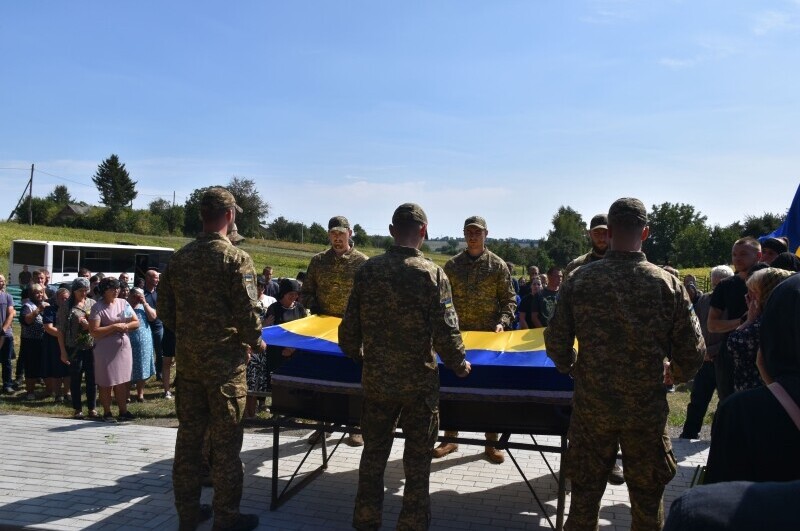 Прощалися з загиблим зі сльозами на очах, скорботою та болем від непоправної втрати рідні, односельчани, жителі навколишніх сіл, друзі, представники влади та військові. Поховали бійця поруч із іншими Героями на кладовищі в с. Михлин.