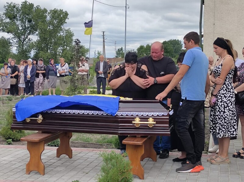 Відспівали Героя священики УПЦ на подвір'ї рідного дому. Прощання було людним: прийшли рідні, друзі, побратими, військовослужбовці, духовенство, освітяни, медики, працівники сільської ради, небайдужі жителі громади.
