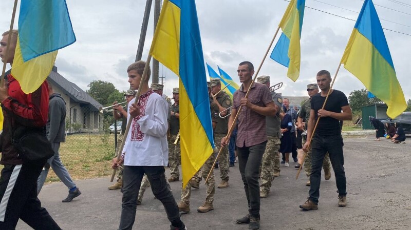 Траурний кортеж Захисника, віддаючи шану, схилившись на коліна, зустрічали жителі сіл Дерно, Хром'яків, Дідичі.