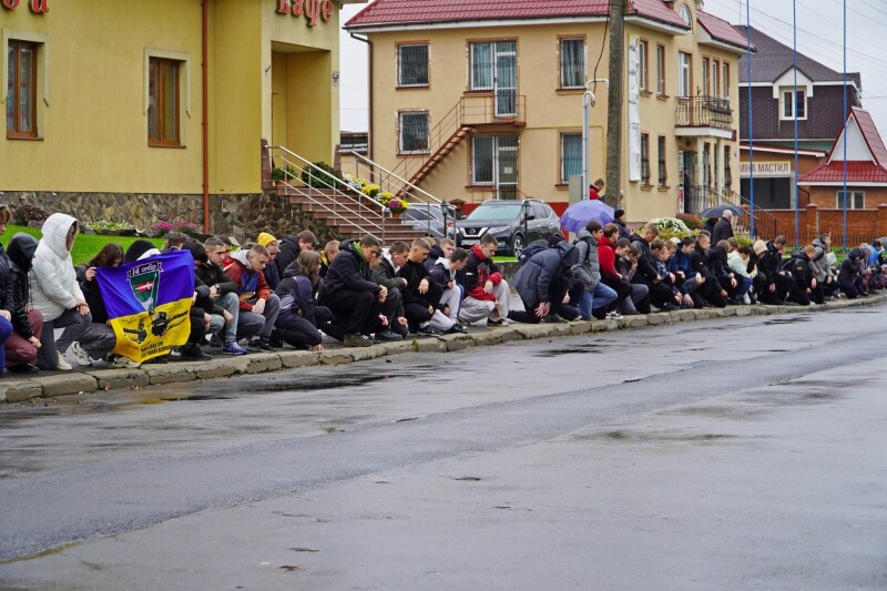 Попри холодній осінній дощ біля храму Віри, Надії, Любові та матері їх Софії зібралось чимало містян, які прийшли, аби попрощатись з Андрієм Юшком. Кортеж, який проїжджав вулицями міста, супроводжував живий коридор – люди навколішки, схиливши низько голови, віддавали останню шану Герою, який не пошкодував свого життя заради вільної та незалежної України.