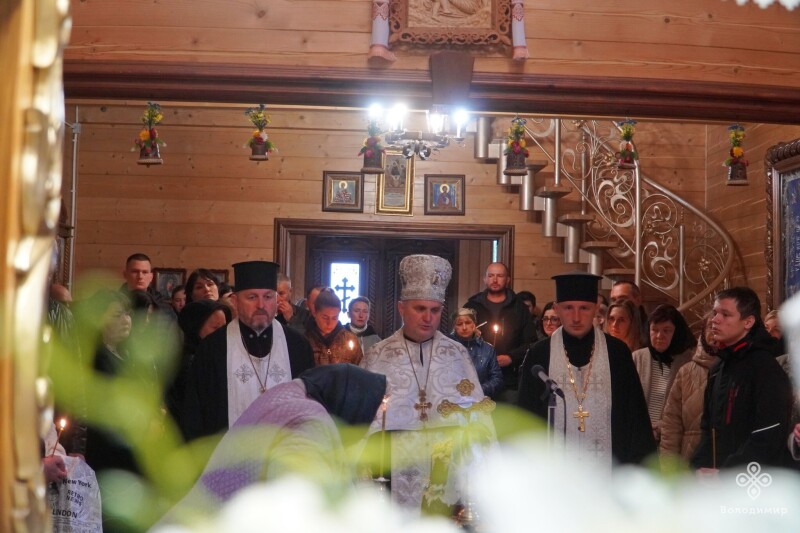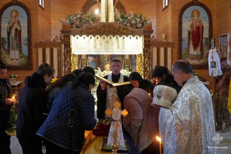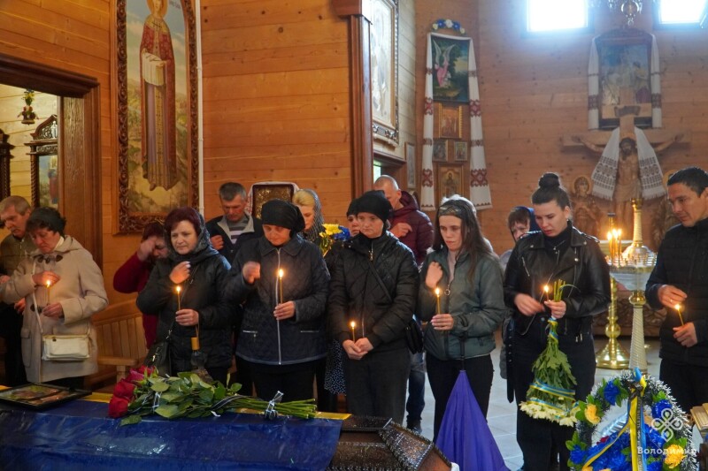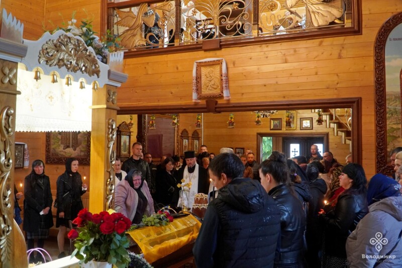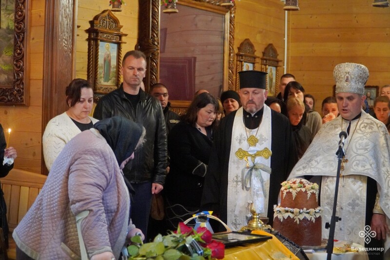 Прощання з воїном відбулося у Храмі святих Віри, Надії, Любові та їх матері Софії, куди віддати шану прийшли рідні, побратими, міська влада, яку представляв очільник громади Ігор Пальонка, та небайдужі мешканці.