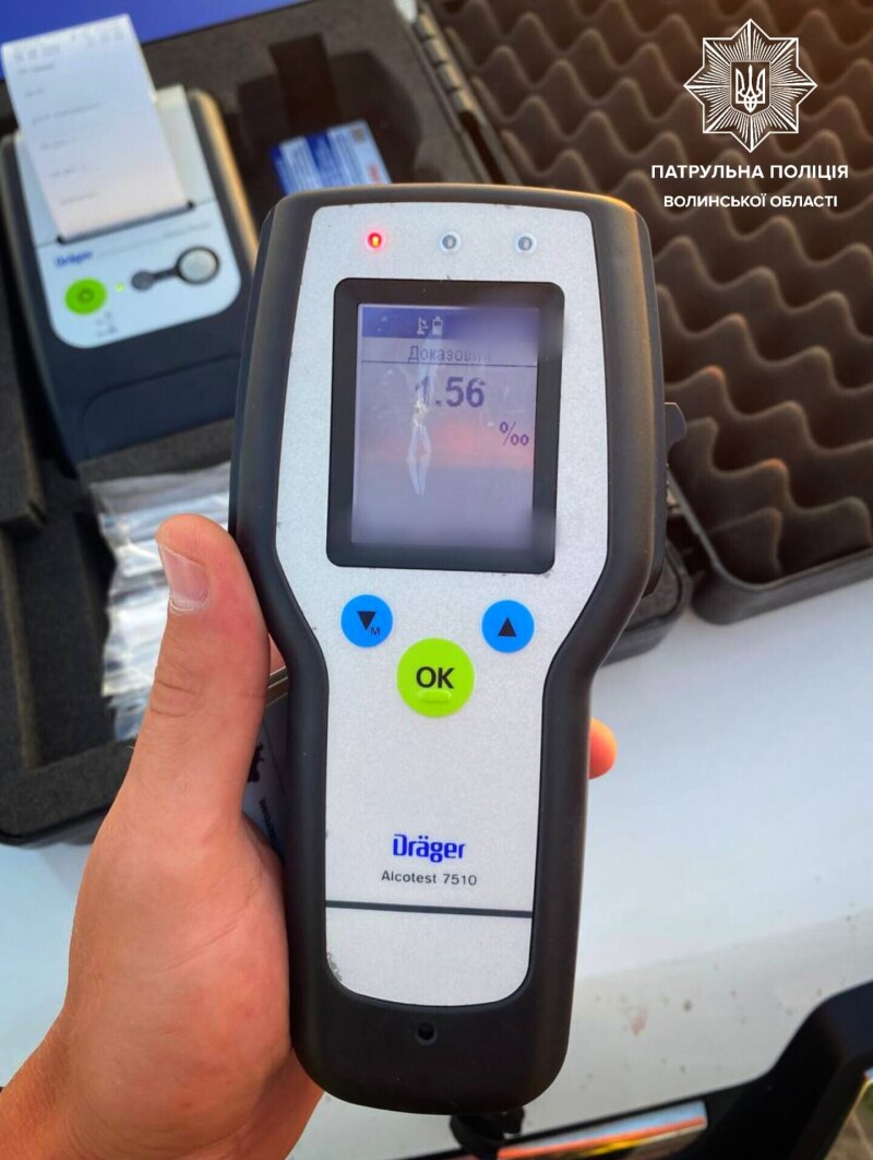 Інспектори помітили, що водій вантажівки DAF порушив правила дорожнього руху, тож зупинили транспортний засіб. Коли патрульні почали спілкуватися з керманичем, то виявили в нього явні ознаки алкогольного сп’яніння. Чоловік погодився пройти огляд на місці події. Прилад Drager дав результат 1,56 проміле, тож інспектори повідомили водію, що на нього буде складено відповідні адмінматеріали.