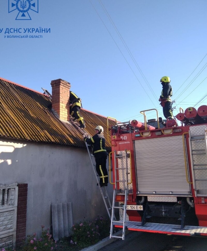 На Волині, що врятувати бідолашну тварину, яка застрягла між комином та покрівлею, господарям будинку довелось викликати службу 101. Це трапилося в місті Любомль.