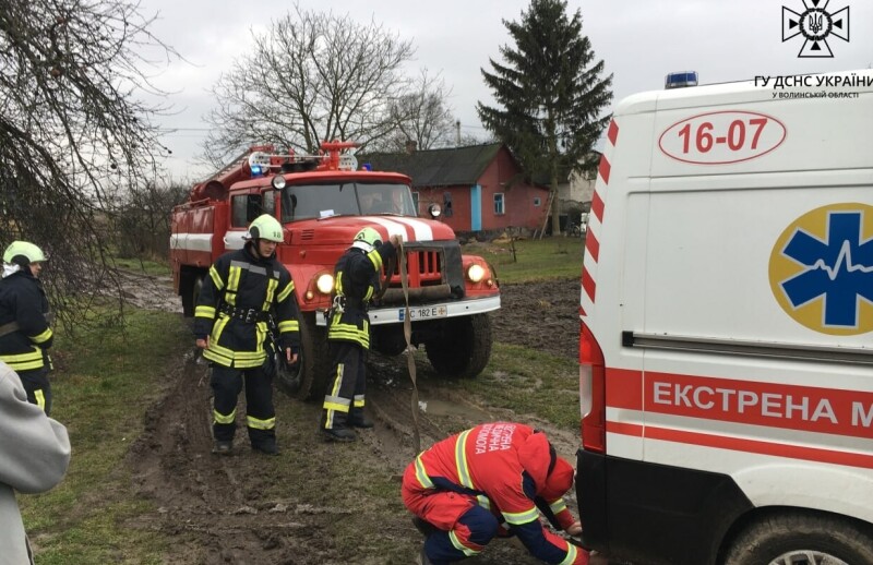 Рятувальники 18-ї державної пожежно-рятувальної частини смт Іваничі за допомогою буксирувального тросу витягнули автомобіль екстренної медичної допомоги на дорогу з твердим покриттям.