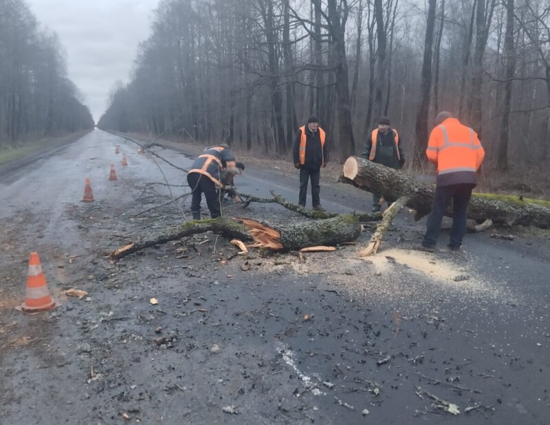 На фото: роботи з прибирання поваленого вітром дерева на автошляху М-19 Доманове (на м. Брест) – Ковель – Чернівці – Тереблече (на м.Бухарест).
