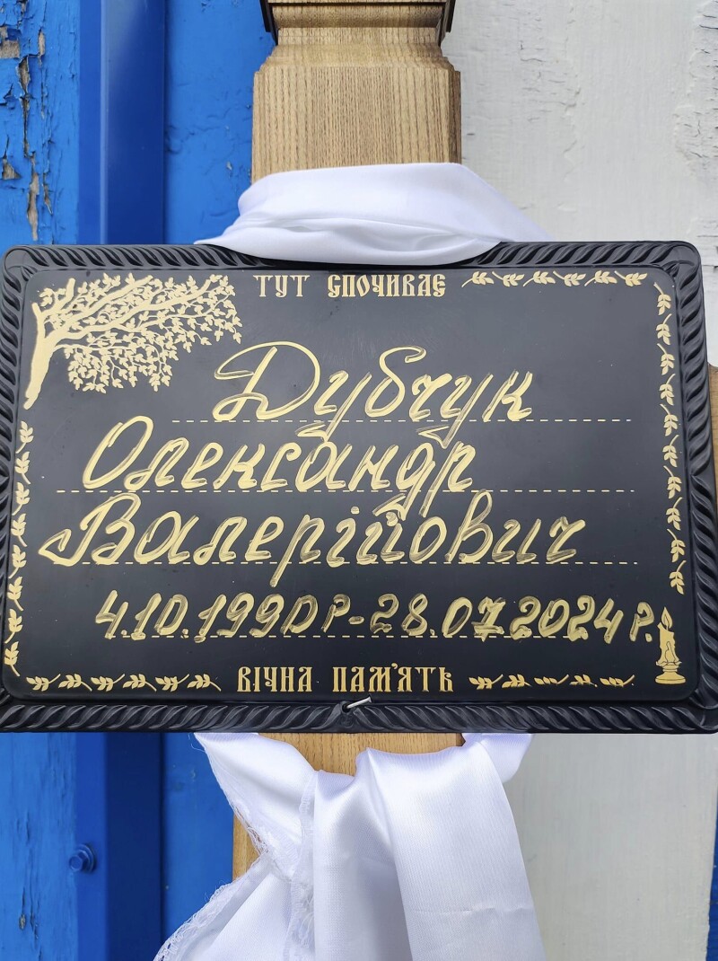 Росія, яка напала на нашу країну, поламала ці плани. У травні 2024 року Олександр був мобілізований. Не довгим був його бойовий шлях, всього три тижні на передовій. Ворожий дрон забрав його молоде життя.