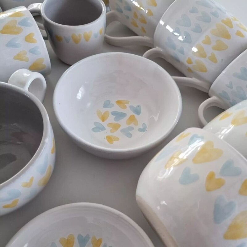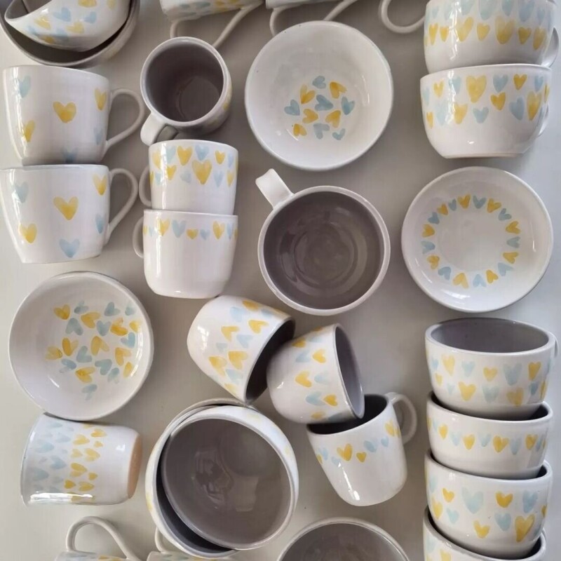 Свіжу колекцію посуду з жовто-блакитними сердечками розкупили за лічені дні. Замовлення були з Одеси, Харкова, Києва, Дніпра, Житомира та усіх західних областей України.