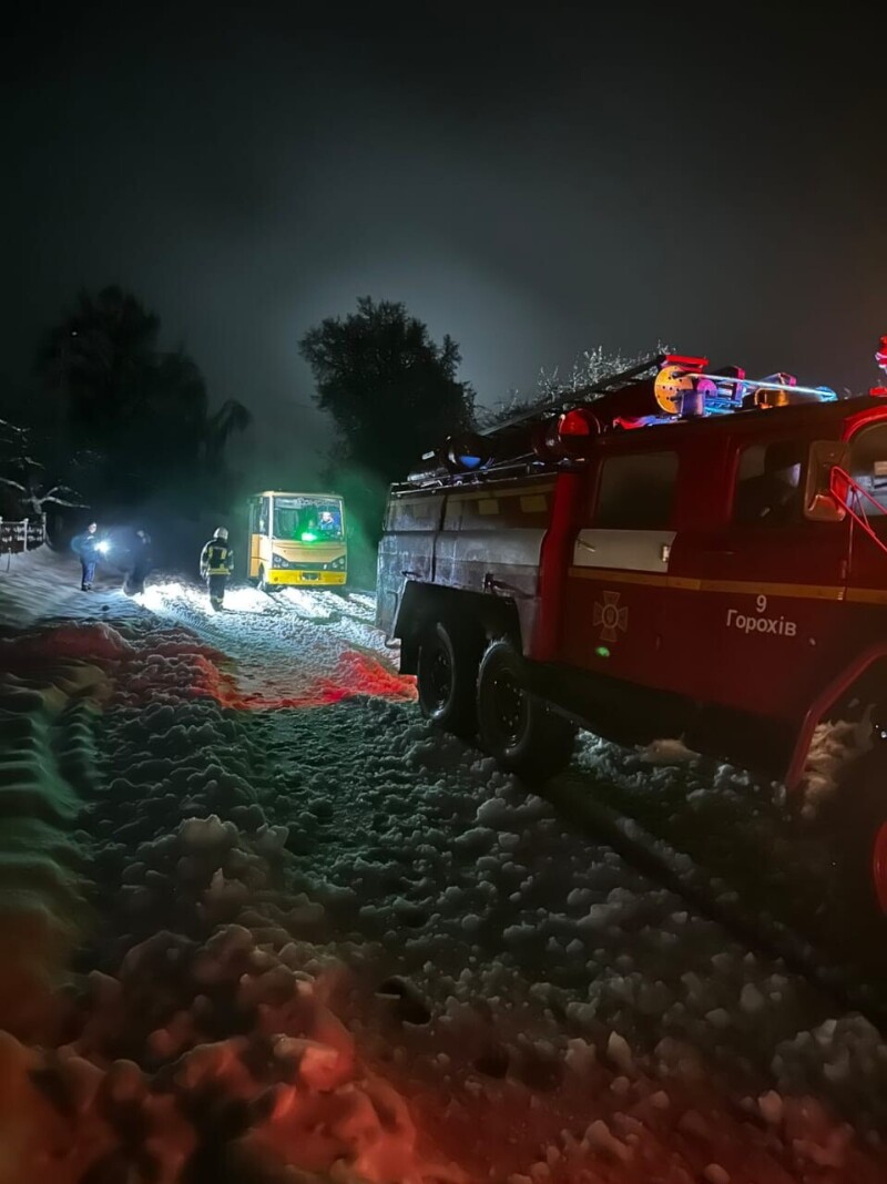 Опівночі поблизу селища Сенкевичівка Луцького району водій автобусу не впорався з керуванням та заїхав в сніговий замет. В салоні перебувало 29 пасажирів та водій. Рятувальники м. Горохів відбуксирували автобус за допомогою тросу.