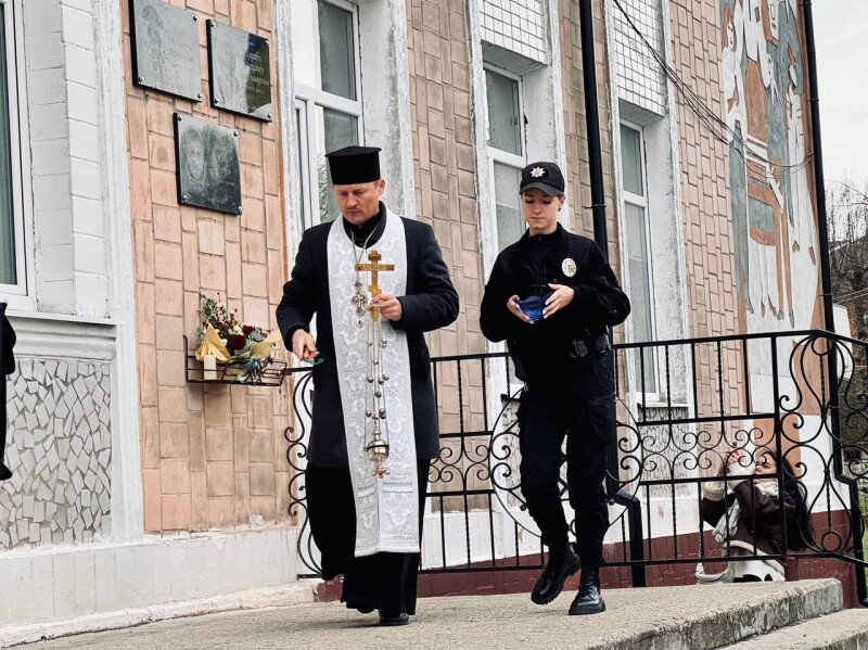 Настоятель Хресто-Воздвиженської церкви отець Віталій Голян освятив меморіальні дошки, разом з присутніми помолився за спокій душ полеглих.