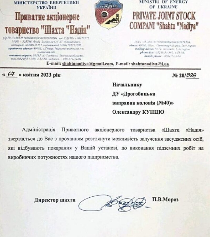 За його словами, залучати до роботи на шахтах хочуть, зокрема, в'язнів Дрогобицької виправної колонії №40.