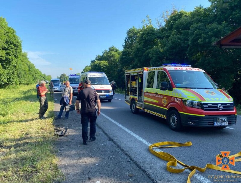 В автобусі перебувало 17 чоловік, вісьмох карети швидкої доправили до медичного закладу.