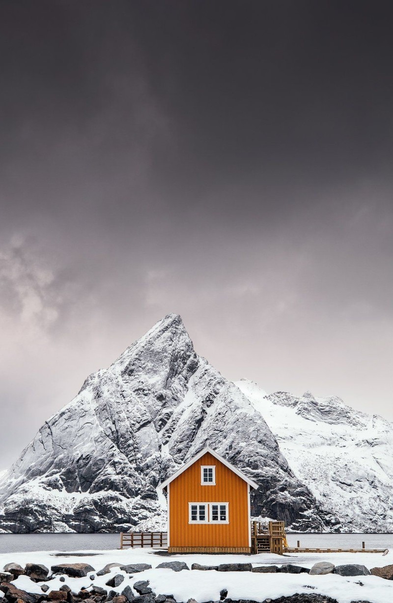 «На ній прекрасний вид на гору Олстінден, форма якої повторює дах маленького будиночка, що стоїть поруч. А жовтий колір його стін створює приголомшливий контраст зі схилами гори, покритиих снігом».