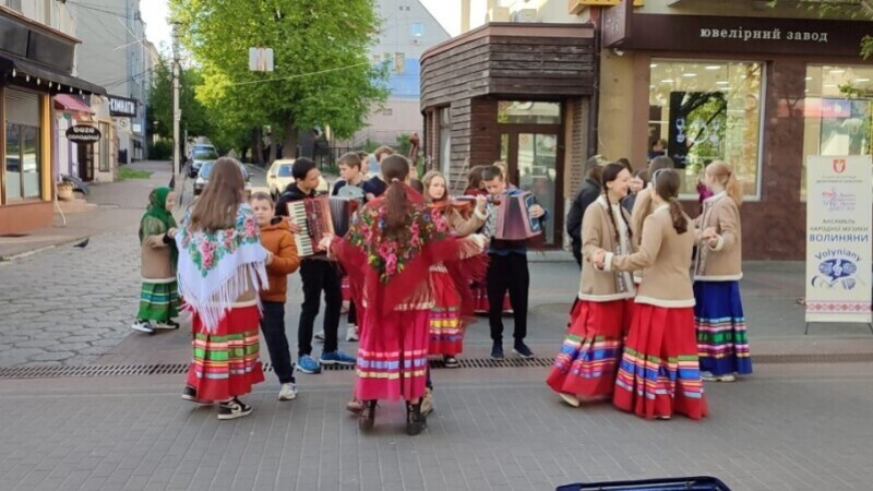 20 квітня перехожих вітали з теплими весняними днями учасники ансамблю народної музики «Волиняни» Луцької музичної школи №3 (керівники Тетяна Жилюк та Анатолій Марценюк). Юні таланти дарували усім свій спів, музичні виступи і запальні танці.