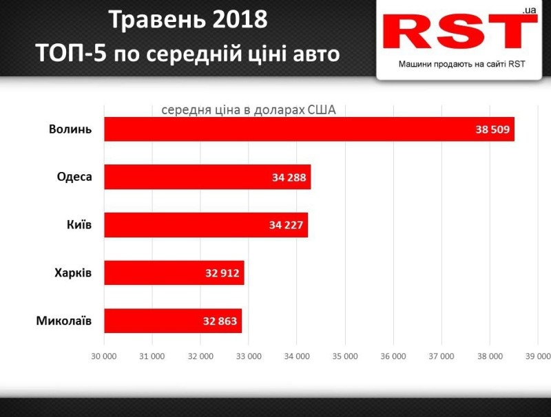 У травні найдорожчі авто купували волиняни. Минулого місяця на Волині на один новий автомобіль витрачали в середньому $38 тисяч.