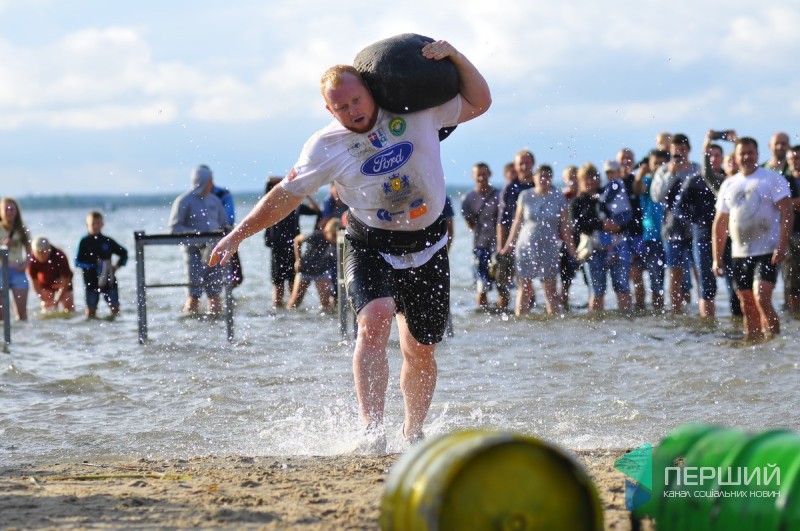 19 богатирів із України та Республіки Білорусь на швидкість перетягували катамаран, перекидали покришки, метали 35-кілограмовими бочками на кілька метрів у висоту, підіймали угору 90-кілограмові блоки та переносили з води на узбережжя бочки і мішки, заповнені піском.