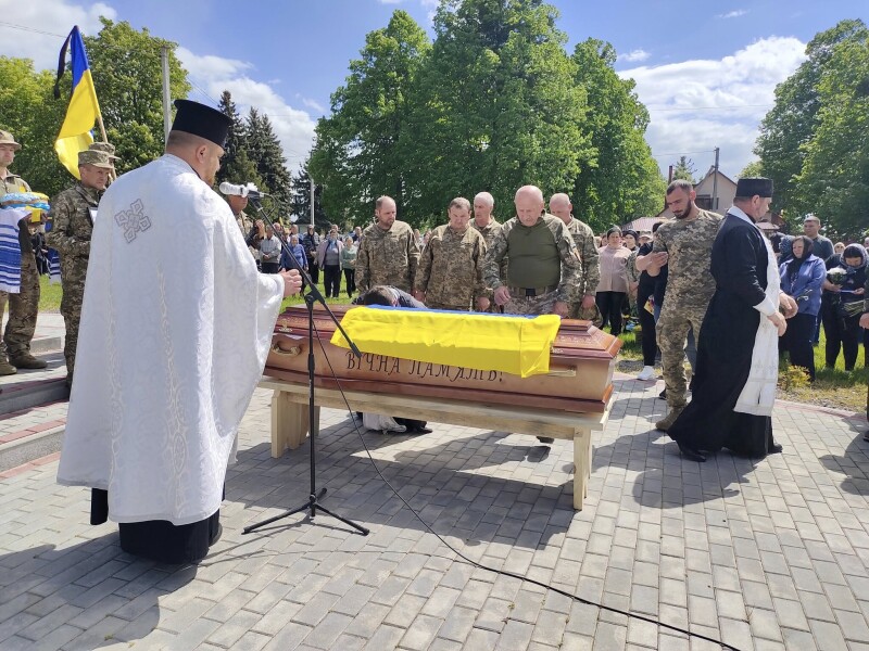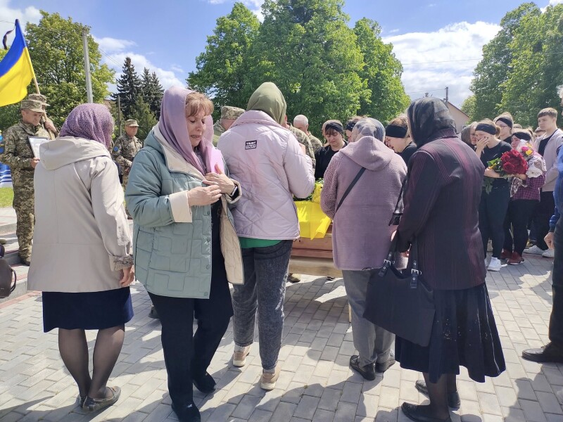 Прощалися з загиблим зі сльозами на очах, скорботою та болем від непоправної втрати, з квітами та навколішки.